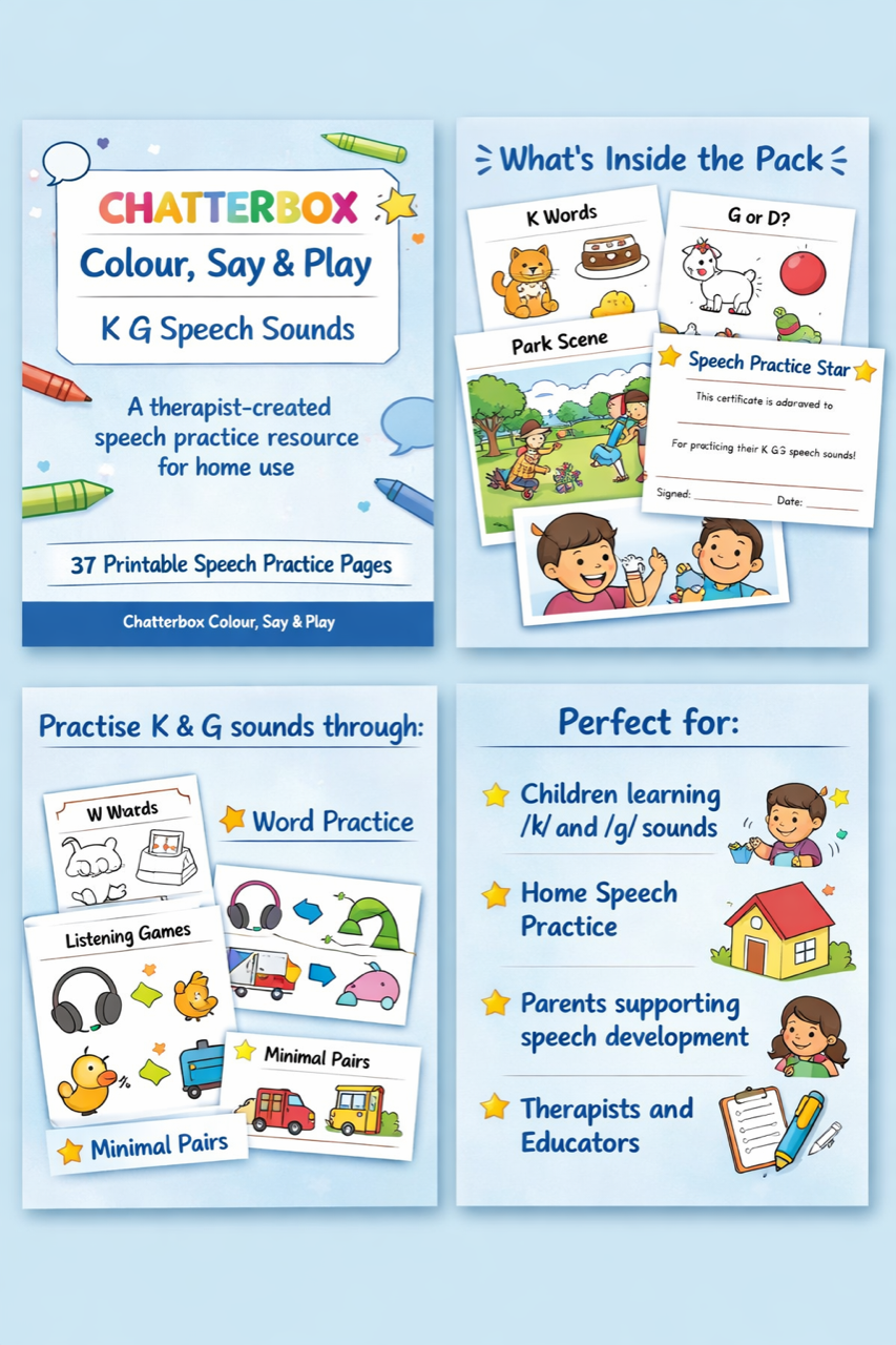 Encourages daily speech practice Just print the pages you need and start practising together.